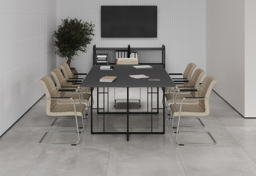 Минималистичный стиль лофт, дизайнерские опоры у столов руководителей, журнальных столов, столов для переговоров, металлические каркасы у стеллажей, наборные шкафы - все это современная серия Миллениум Директ.