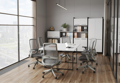 Минималистичный стиль лофт, дизайнерские опоры у столов руководителей, журнальных столов, столов для переговоров, металлические каркасы у стеллажей, наборные шкафы - все это современная серия Миллениум Директ.