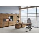 Минималистичный стиль лофт, дизайнерские опоры у столов руководителей, журнальных столов, столов для переговоров, металлические каркасы у стеллажей, наборные шкафы - все это современная серия Миллениум Директ.
