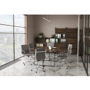 Минималистичный стиль лофт, дизайнерские опоры у столов руководителей, журнальных столов, столов для переговоров, металлические каркасы у стеллажей, наборные шкафы - все это современная серия Миллениум Директ.