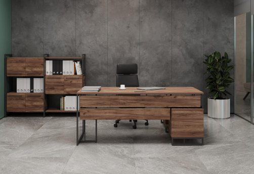Минималистичный стиль лофт, дизайнерские опоры у столов руководителей, журнальных столов, столов для переговоров, металлические каркасы у стеллажей, наборные шкафы - все это современная серия Миллениум Директ.