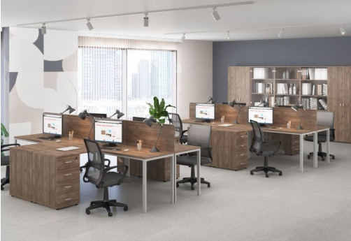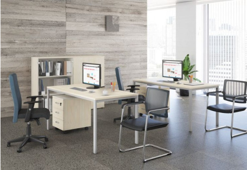 Серия мебели Прайм - четыре доступных варианта цвета и множество решений для обустройства вашего офиса: прямые рабочие столы, эргономичные столы на ЛДСП-опорах, стеллажи, три линейки шкафов высотой 200, 123 и 84 см, тумбы мобильные, приставные, сервисные, настольные экраны.
