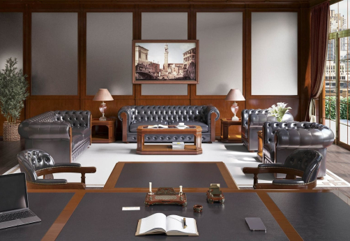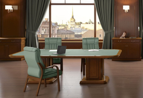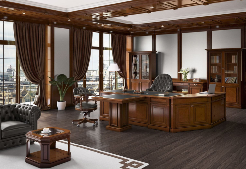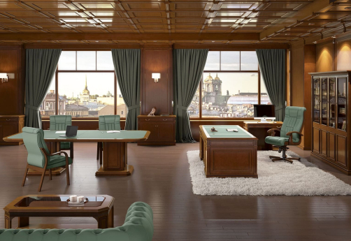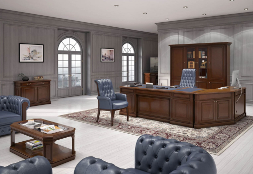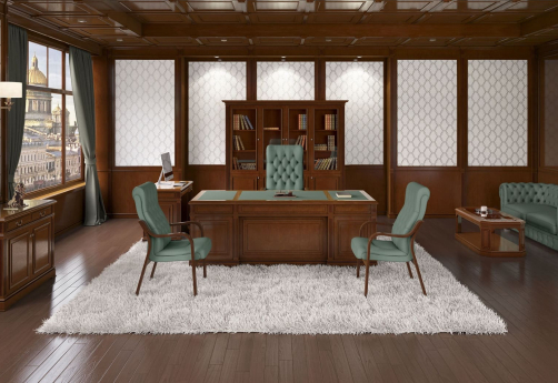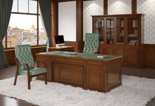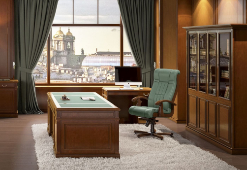 Кабинет выполнен в благородном классическом стиле, при этом в соответствии с современными дизайнерскими тенденциями. Это прекрасный пример мебели премиум-класса, предназначенной для статусных дорогих интерьеров. Мебель в кабинете смотрится фундаментально и строго, но вместе с тем очень элегантно.