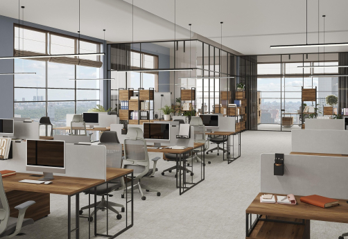 Минималистичный стиль лофт, дизайнерские опоры у столов, металлические каркасы у стеллажей, рабочие станции, наборные шкафы - все это современная серия Миллениум.