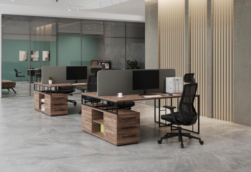 Минималистичный стиль лофт, дизайнерские опоры у столов, металлические каркасы у стеллажей, рабочие станции, наборные шкафы - все это современная серия Миллениум.