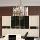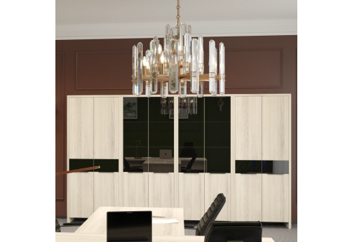 Амстердам - мебель в кабинет руководителя, выполненная в современном дизайне. Особенность серии: декор из полированного стекла лакобель, толстые столешницы, сборные столы для заседаний и конференций, актуальные цвета ЛДСП.