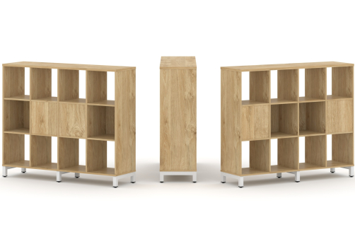 Набор стеллажа одностороннего 3 яруса (вставка с распашным фасадом 2 шт + ЗС 2 шт) Сити Офис Вуд, цвет тиквуд светлый