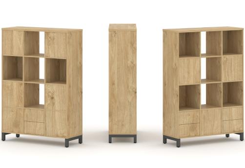 Набор стеллажа одностороннего 3 яруса (вставка два ящика 1 шт + ЗС 4 шт) Сити Офис Вуд, цвет тиквуд светлый