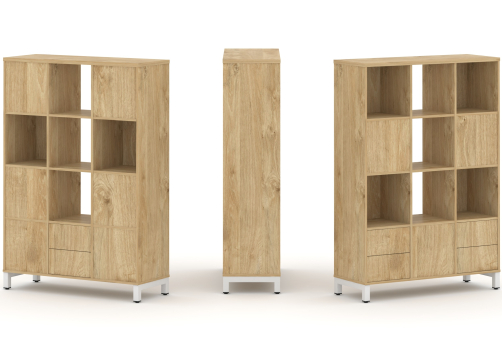 Набор стеллажа двухстороннего 4 яруса (вставка два ящика 3 шт + ЗС 6 шт) Сити Офис Вуд, цвет тиквуд светлый