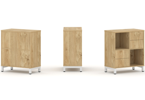 Набор стеллажа одностороннего 2 яруса (вставка один ящик 2 шт + два ящика 2 шт) Сити Офис Вуд, цвет тиквуд светлый