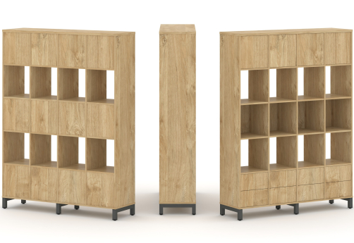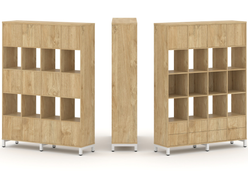 Набор стеллажа двухстороннего 4 яруса (вставка два ящика 3 шт + ЗС 6 шт) Сити Офис Вуд, цвет тиквуд светлый