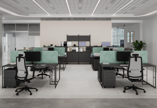 Минималистичный стиль лофт, дизайнерские опоры у столов, металлические каркасы у стеллажей, рабочие станции, наборные шкафы - все это современная серия Миллениум.
