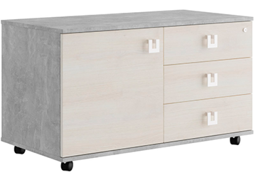 Тумба подкатная с 3 ящиками Челси, цвет дуб шамони светлый + бетон светлый