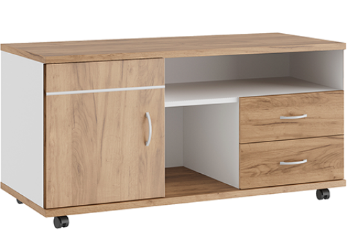 Тумба под оргтехнику Эрника, цвет дуб шамони светлый + белый