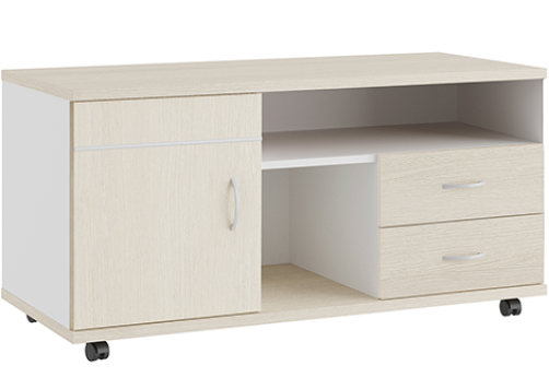 Тумба под оргтехнику Эрника, цвет дуб шамони светлый + белый