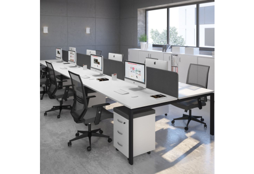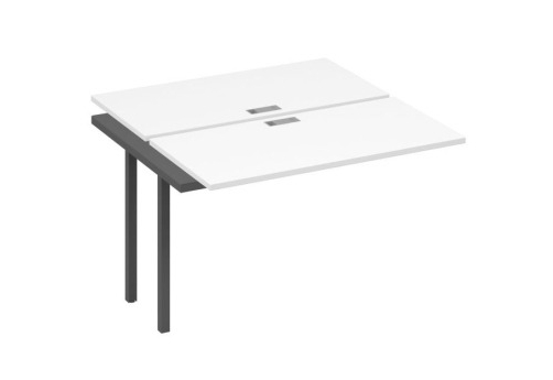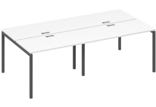 Современная стильная мебель отечественного производства на металлокаркасе с порошковым покрытием - П-образная опора с сечением 40х40х2 мм с траверсами. Столешница с проставками, с пластиковым кабель-каналом прямоугольной формы. Возможность установки настольных и подстольных экранов, а также применения системы кабель-менеджмента.
