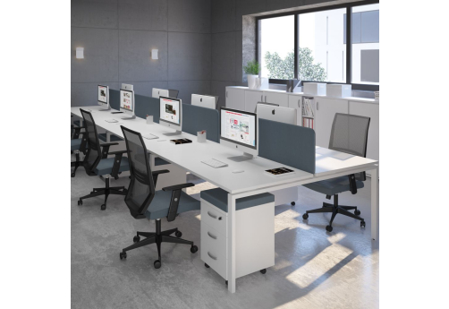 Современная стильная мебель отечественного производства на металлокаркасе с порошковым покрытием - П-образная опора с сечением 40х40х2 мм с траверсами. Столешница с проставками, с пластиковым кабель-каналом прямоугольной формы. Возможность установки настольных и подстольных экранов, а также применения системы кабель-менеджмента.