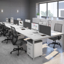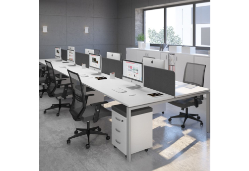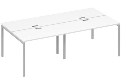 Современная стильная мебель отечественного производства на металлокаркасе с порошковым покрытием - П-образная опора с сечением 40х40х2 мм с траверсами. Столешница с проставками, с пластиковым кабель-каналом прямоугольной формы. Возможность установки настольных и подстольных экранов, а также применения системы кабель-менеджмента.