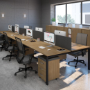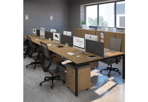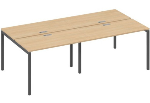 Современная стильная мебель отечественного производства на металлокаркасе с порошковым покрытием - П-образная опора с сечением 40х40х2 мм с траверсами. Столешница с проставками, с пластиковым кабель-каналом прямоугольной формы. Возможность установки настольных и подстольных экранов, а также применения системы кабель-менеджмента.