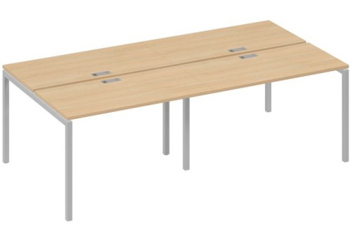 Современная стильная мебель отечественного производства на металлокаркасе с порошковым покрытием - П-образная опора с сечением 40х40х2 мм с траверсами. Столешница с проставками, с пластиковым кабель-каналом прямоугольной формы. Возможность установки настольных и подстольных экранов, а также применения системы кабель-менеджмента.