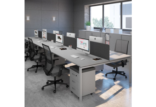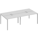 Современная стильная мебель отечественного производства на металлокаркасе с порошковым покрытием - П-образная опора с сечением 40х40х2 мм с траверсами. Столешница с проставками, с пластиковым кабель-каналом прямоугольной формы. Возможность установки настольных и подстольных экранов, а также применения системы кабель-менеджмента.