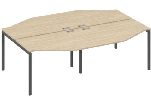 Современная стильная мебель отечественного производства на металлокаркасе с порошковым покрытием - П-образная опора с сечением 40х40х2 мм с траверсами. Столешница с проставками, с пластиковым кабель-каналом прямоугольной формы. Возможность установки настольных и подстольных экранов, а также применения системы кабель-менеджмента.