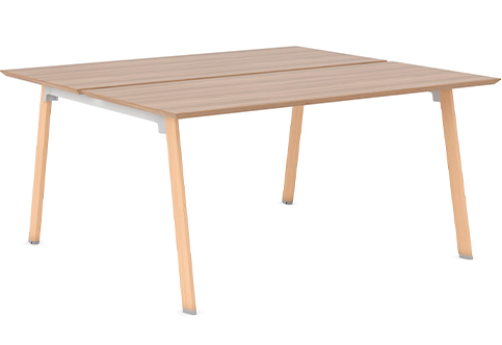Изюминка серии - столы и бенчи на металлических опорах А-образной формы, обтянутые износостойкой пленкой в текстуре светлого дерева. А также минималистичный дизайн, большая линейка мебели для хранения, тканевые экраны, столешница с скосом.