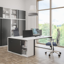 Мебель из серии Фламинго для оптимальной и комфортной работы. Столы на металлоопорах в двух цветах - антрацит и белый. Столешницы с заглушками кабель-канала и с вырезами под кабели/провода. Шкафная группа - модели с 4 вариантами высоты, шкафы-купе, локеры. Тумбы - мобильные, приставные, сервисные.