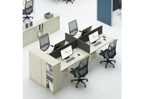 Современная стильная мебель отечественного производства на металлокаркасе с порошковым покрытием - П-образная опора с сечением 40х40х2 мм с траверсами. Столешница с проставками, с пластиковым кабель-каналом прямоугольной формы. Возможность установки настольных и подстольных экранов, а также применения системы кабель-менеджмента.
