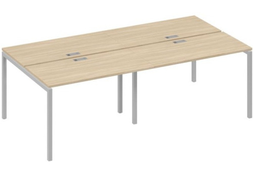 Современная стильная мебель отечественного производства на металлокаркасе с порошковым покрытием - П-образная опора с сечением 40х40х2 мм с траверсами. Столешница с проставками, с пластиковым кабель-каналом прямоугольной формы. Возможность установки настольных и подстольных экранов, а также применения системы кабель-менеджмента.