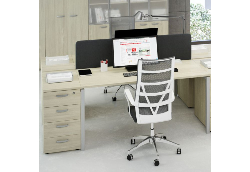 Современная стильная мебель отечественного производства на металлокаркасе с порошковым покрытием - П-образная опора с сечением 40х40х2 мм с траверсами. Столешница с проставками, с пластиковым кабель-каналом прямоугольной формы. Возможность установки настольных и подстольных экранов, а также применения системы кабель-менеджмента.