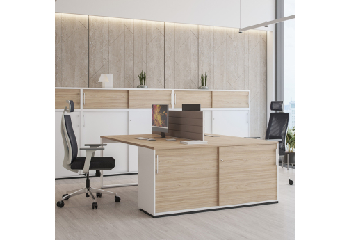 Рабочая станция с вырезом и шкафом-купе Фламинго, цвет акация + белый