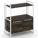 Минималистичный стиль лофт, дизайнерские опоры у столов, металлические каркасы у стеллажей, рабочие станции, наборные шкафы - все это современная серия Миллениум.