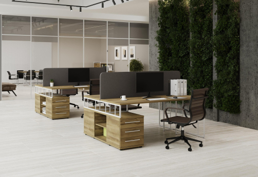 Минималистичный стиль лофт, дизайнерские опоры у столов, металлические каркасы у стеллажей, рабочие станции, наборные шкафы - все это современная серия Миллениум.