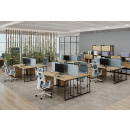 Минималистичный стиль лофт, дизайнерские опоры у столов, металлические каркасы у стеллажей, рабочие станции, наборные шкафы - все это современная серия Миллениум.