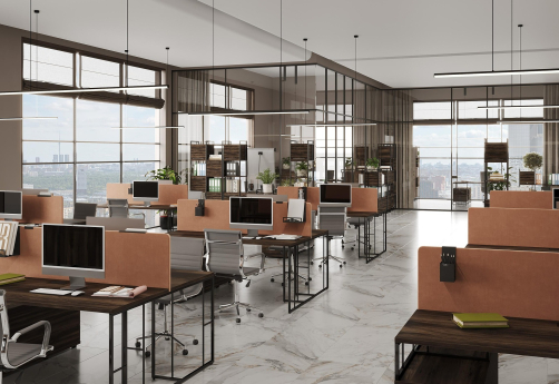 Минималистичный стиль лофт, дизайнерские опоры у столов, металлические каркасы у стеллажей, рабочие станции, наборные шкафы - все это современная серия Миллениум.