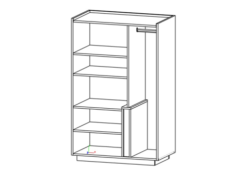 Шкаф (4 полки, 2 распашных фасада + продольная штанга) левый, цвет дуб темный