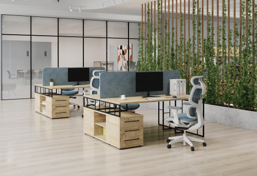 Минималистичный стиль лофт, дизайнерские опоры у столов, металлические каркасы у стеллажей, рабочие станции, наборные шкафы - все это современная серия Миллениум.