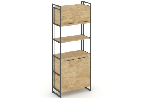 Шкаф средний составной (1 со стеклом + 2 стеллажа) Луара, цвет дуб адриа + серый