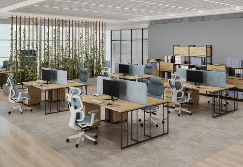 Минималистичный стиль лофт, дизайнерские опоры у столов, металлические каркасы у стеллажей, рабочие станции, наборные шкафы - все это современная серия Миллениум.