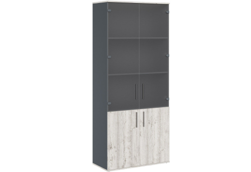 Шкаф для бумаг со стеклом (в алюминиевой раме) Фредерик, цвет дуб нордик + антрацит