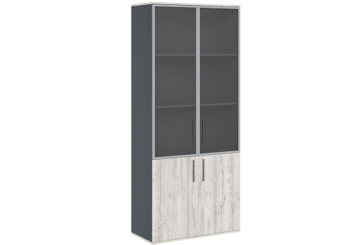 Шкаф для бумаг со стеклом (в алюминиевой раме) Фредерик, цвет дуб нордик + антрацит
