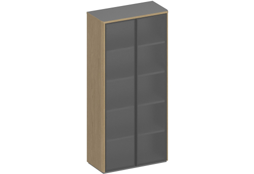 Шкаф для документов высокий со стеклом (стенка из 2 шкафов) Гауди, цвет дуб