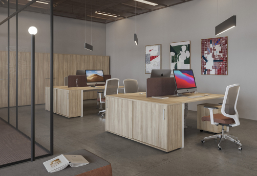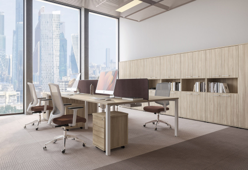 Коллекция мебели для персонала Авилла – широкая линейка письменных столов и рабочих станций с различными вариантами исполнения столешницы. Для большего комфорта - всего лишь одна траверса под столешницей. Шкафы с плавным закрыванием дверей. В тумбах - выступы на фасадах вместо лицевой фурнитуры, телескопические лотки для канцтоваров, мягкие подушки, усиленные опоры.