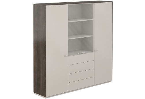 Шкаф комбинированный 2 гардероба + для документов с прозрачным стеклом 4 ящика Дания, цвет брэнсон трюфель + серый камень