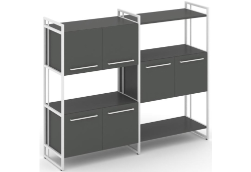 Минималистичный стиль лофт, дизайнерские опоры у столов, металлические каркасы у стеллажей, рабочие станции, наборные шкафы - все это современная серия Миллениум.