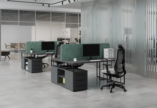 Минималистичный стиль лофт, дизайнерские опоры у столов, металлические каркасы у стеллажей, рабочие станции, наборные шкафы - все это современная серия Миллениум.