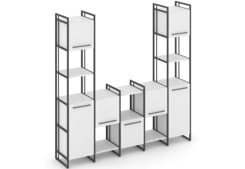 Минималистичный стиль лофт, дизайнерские опоры у столов, металлические каркасы у стеллажей, рабочие станции, наборные шкафы - все это современная серия Миллениум.