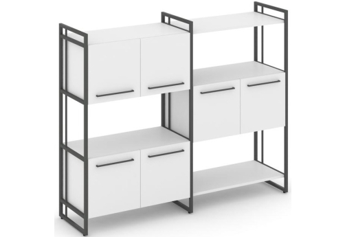 Минималистичный стиль лофт, дизайнерские опоры у столов, металлические каркасы у стеллажей, рабочие станции, наборные шкафы - все это современная серия Миллениум.