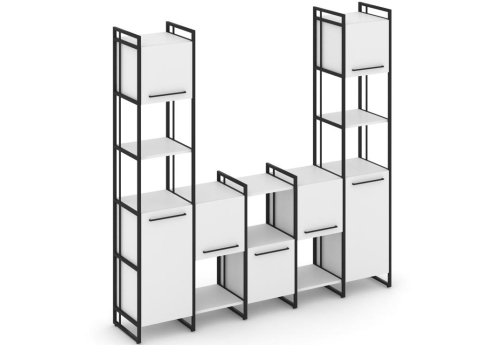 Минималистичный стиль лофт, дизайнерские опоры у столов, металлические каркасы у стеллажей, рабочие станции, наборные шкафы - все это современная серия Миллениум.